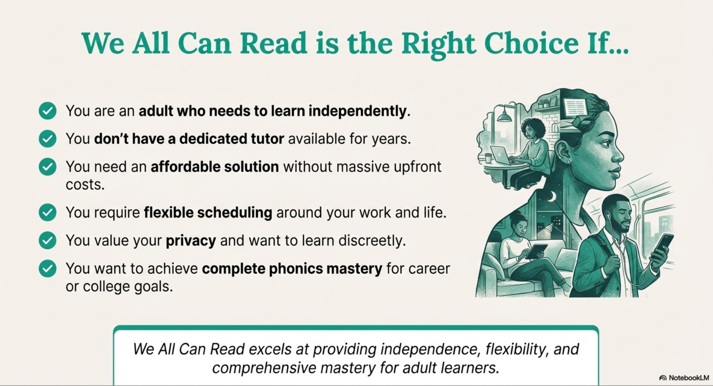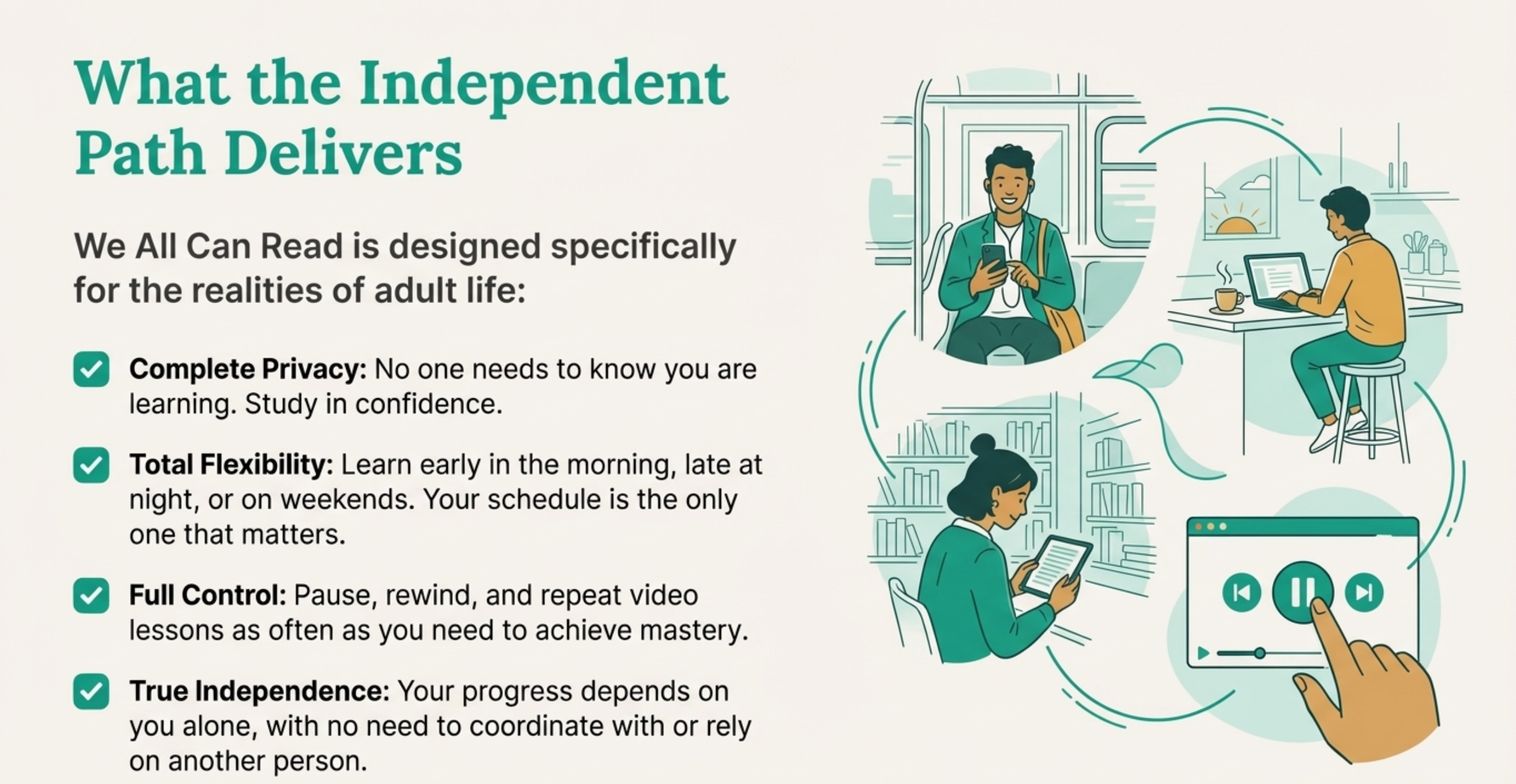 - ✅ You want privacy – don’t want others to know you’re learning to read