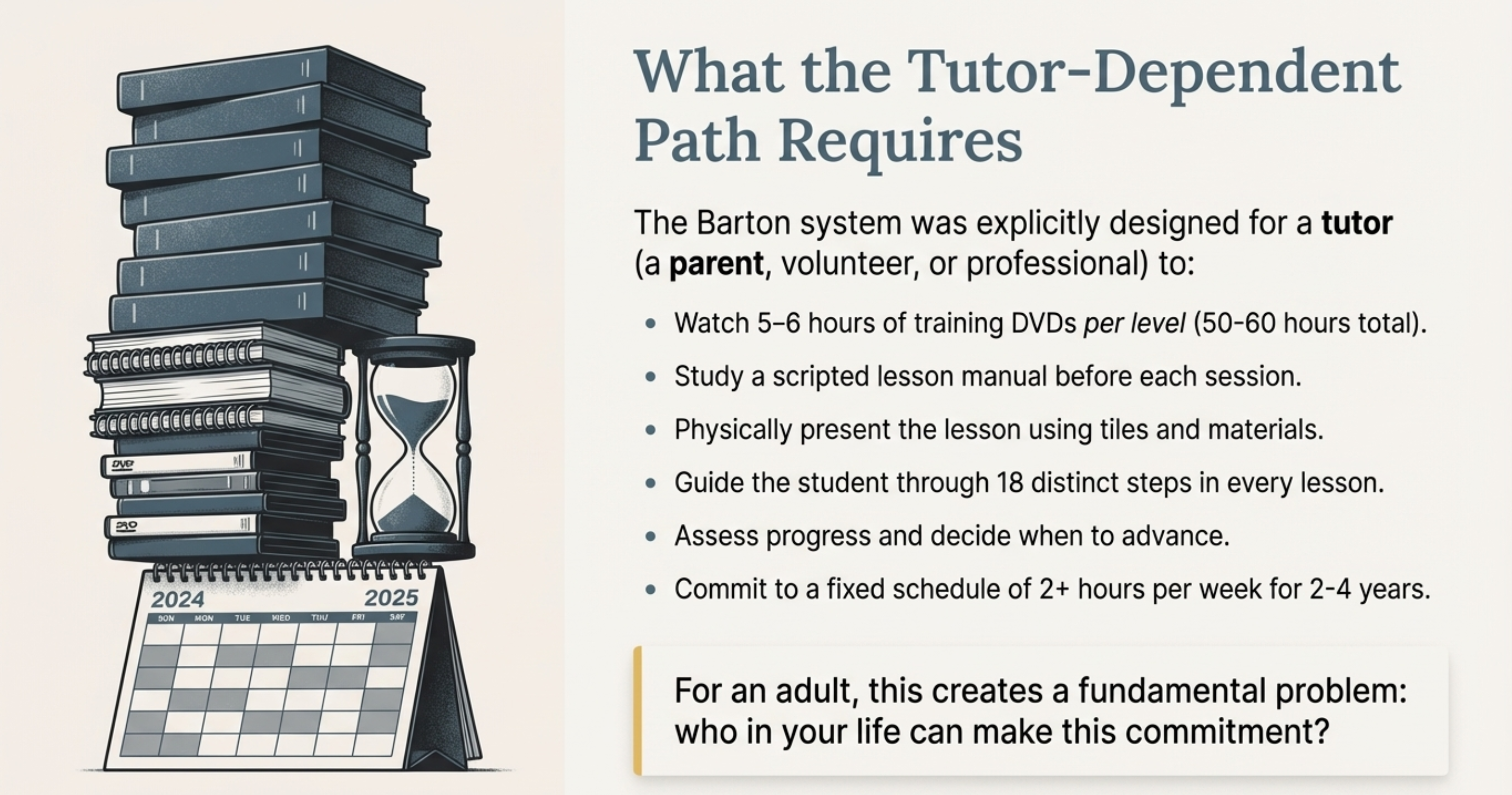However, there’s a critical question adult learners need to ask: Is a program designed for homeschool parents to tutor their dyslexic children the right solution for independent adult learners?