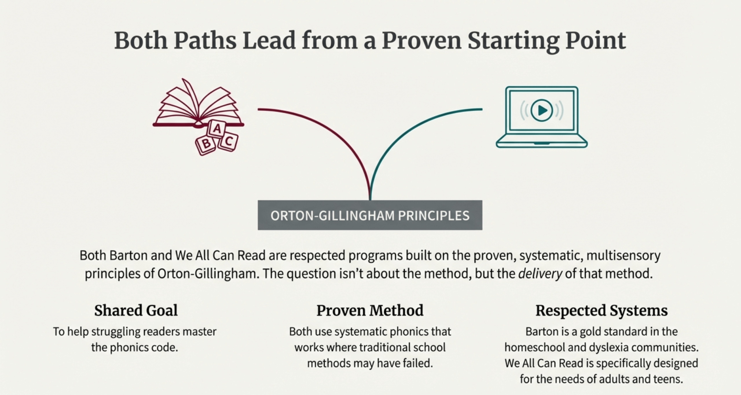 Both Barton and We All Can Read use proven Orton-Gillingham methods. But why does systematic phonics work when traditional school methods didn’t? The answer lies in understanding the literacy code.