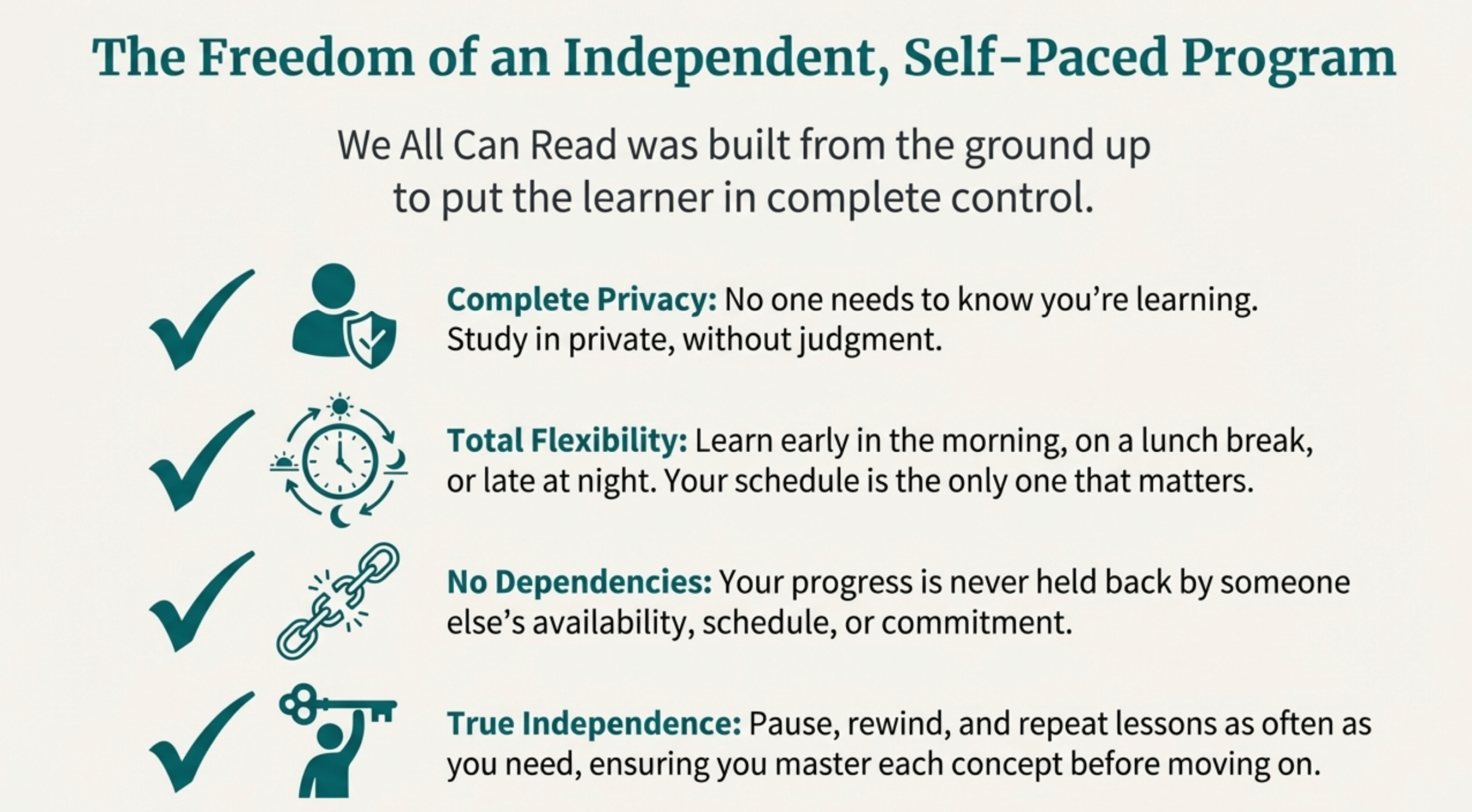 We All Can Read: Independent, Self-Paced Learning
