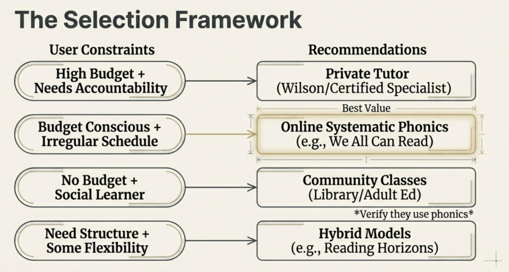 The program you choose matters, but what matters most is starting. Every day you delay is another day of limitation. You deserve reading independence, career opportunities, and the ability to help your children with homework.