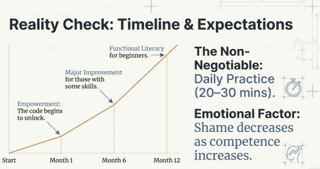 Learning to read as an adult—particularly if you’re starting from the beginning—requires genuine time and effort. Most adults need 6-12 months of consistent daily practice to achieve solid reading skills. Programs that promise dramatically faster results are either targeting people who already have basic skills or overpromising what they can deliver.
