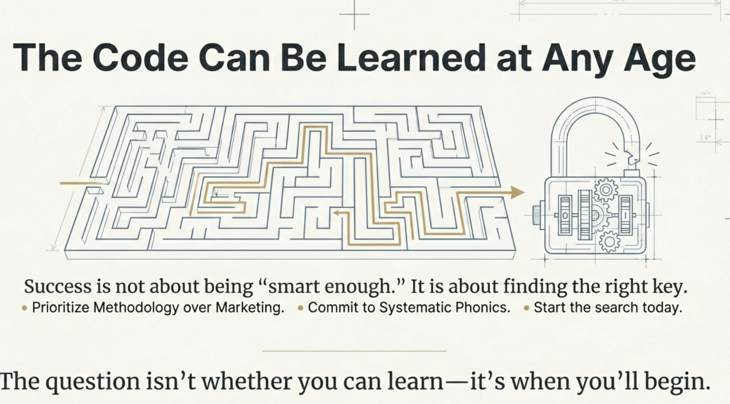 Thousands of adults successfully learn to read every year. The common factor: they found effective instruction using systematic phonics and committed to consistent practice.