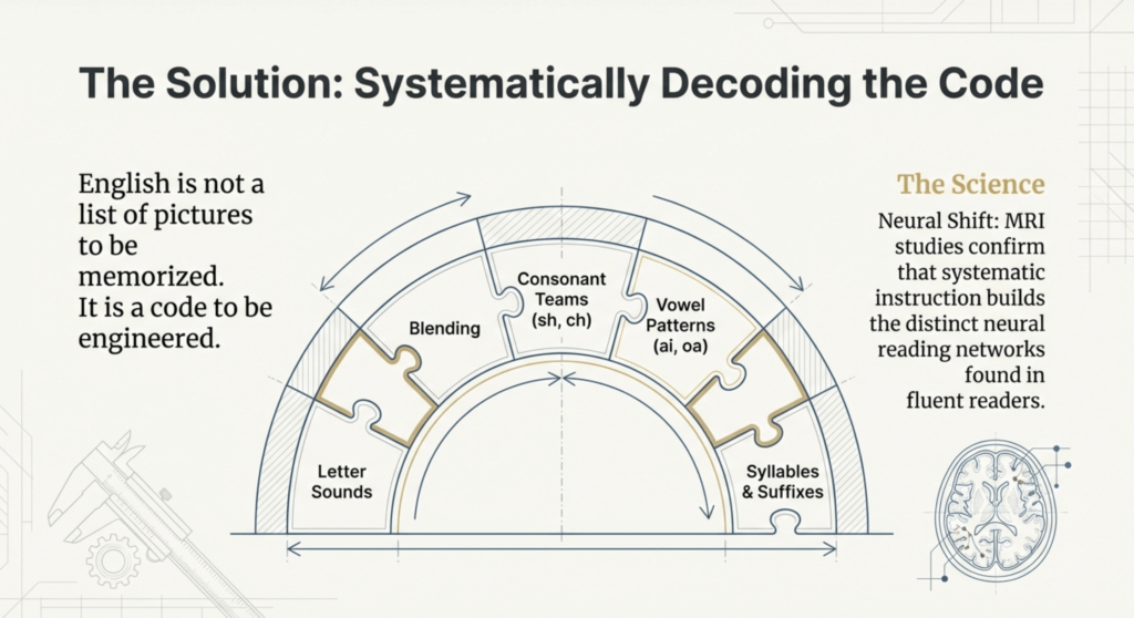 This isn’t just “basic phonics.” It’s the entire alphabetic code of English, taught systematically from simple to complex.