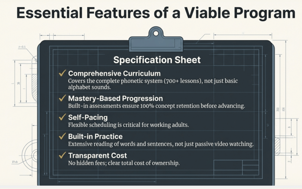 Cost comparison: See our Adult Phonics Cost Comparison Guide for detailed pricing.
