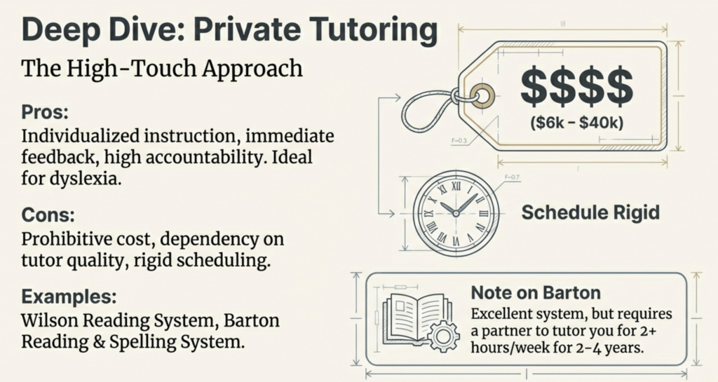 Best for: Adults who can afford private instruction, need intensive support, or have specific learning challenges requiring individual attention.