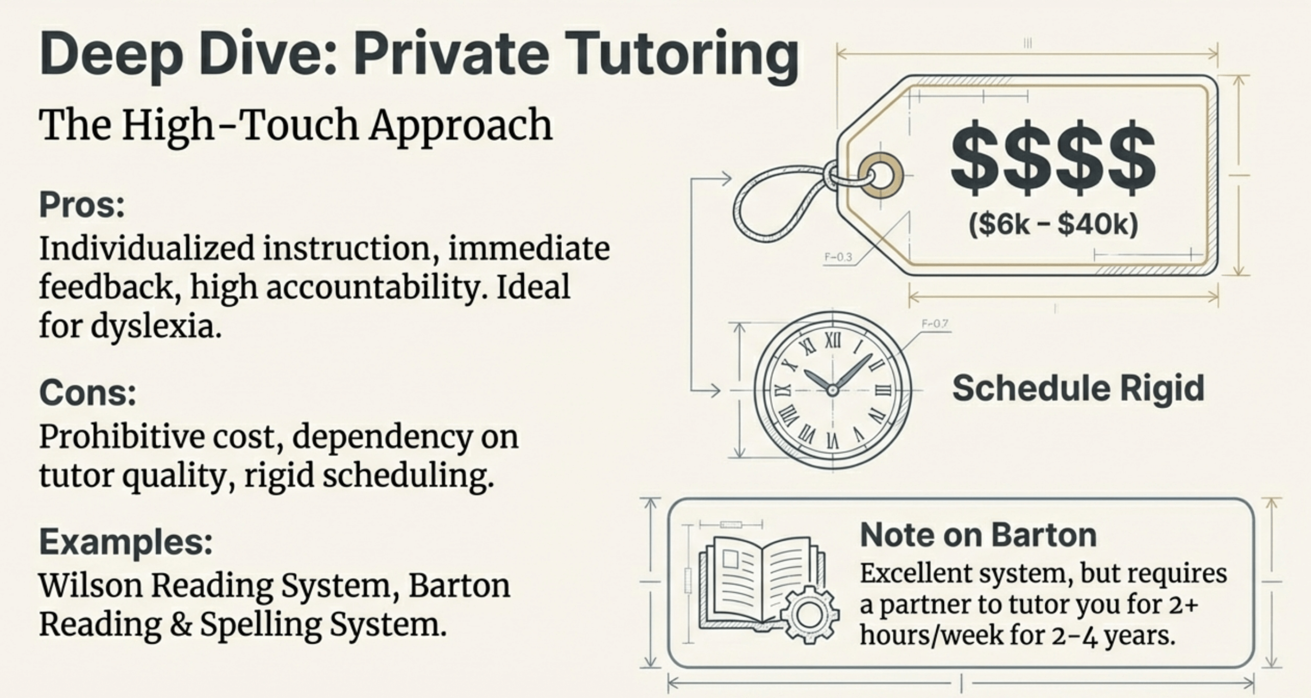 Not necessarily. Program cost often reflects delivery format (private tutoring vs. online) rather than teaching quality. A $20,000 tutoring program and a $600 online program might teach the exact same systematic phonics content. The difference is individual attention vs. self-paced learning. Choose based on which format works for your learning style and budget, not price alone.