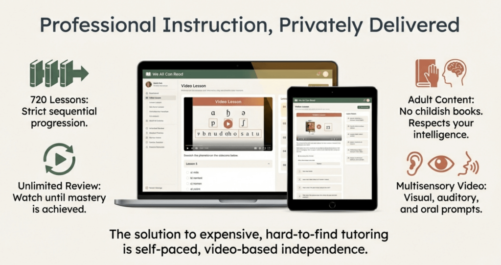 The key question isn’t whether expensive programs work better—it’s whether you need one-on-one tutoring or can learn effectively through comprehensive online instruction. For a complete comparison of adult phonics programs including those designed for dyslexia, see our Adult Phonics Cost Comparison Guide.