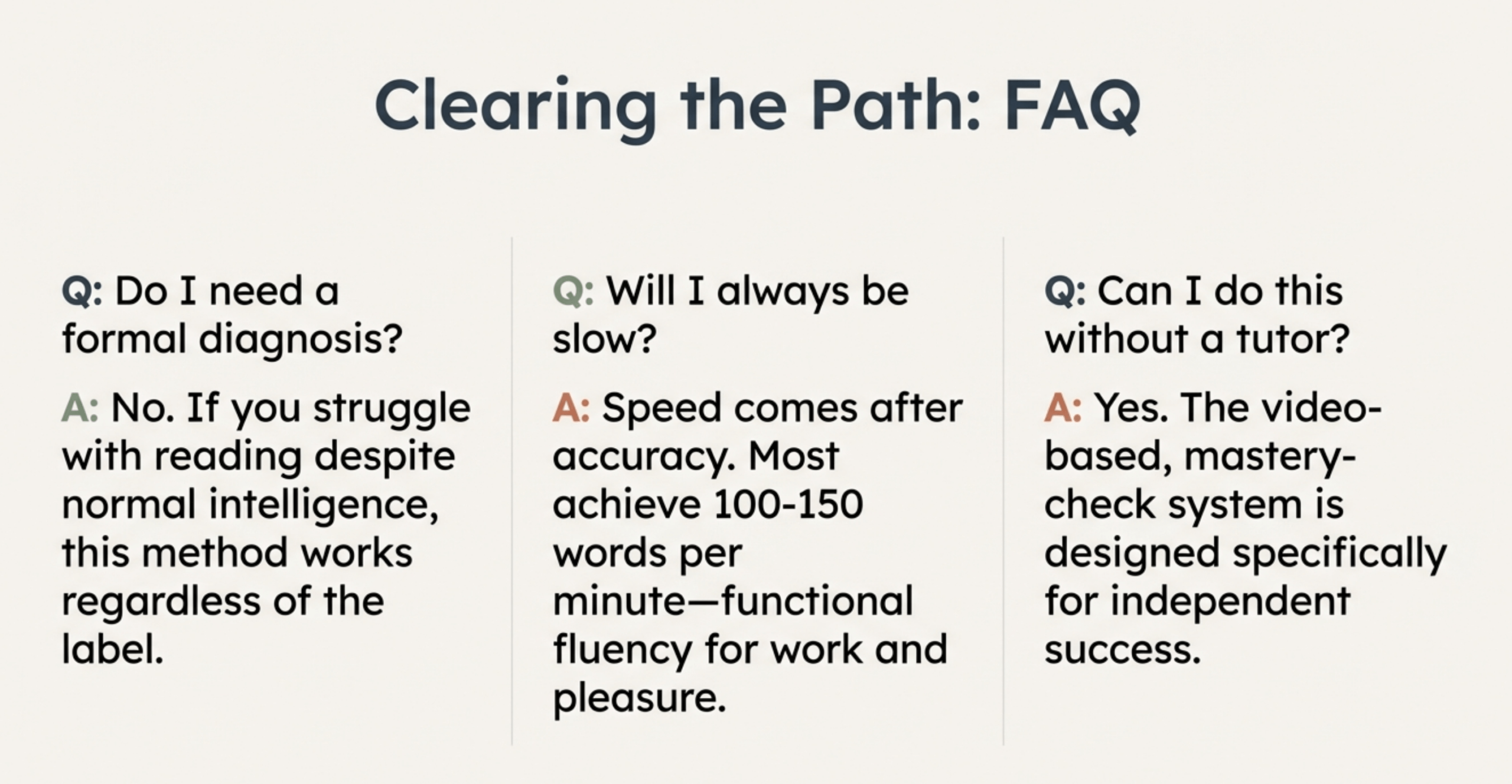 Yes. While traditional Orton-Gillingham emphasizes one-on-one tutoring, our video-based program successfully teaches dyslexic adults independently. The systematic instruction, unlimited review, and mastery-based progression provide the support dyslexic learners need.