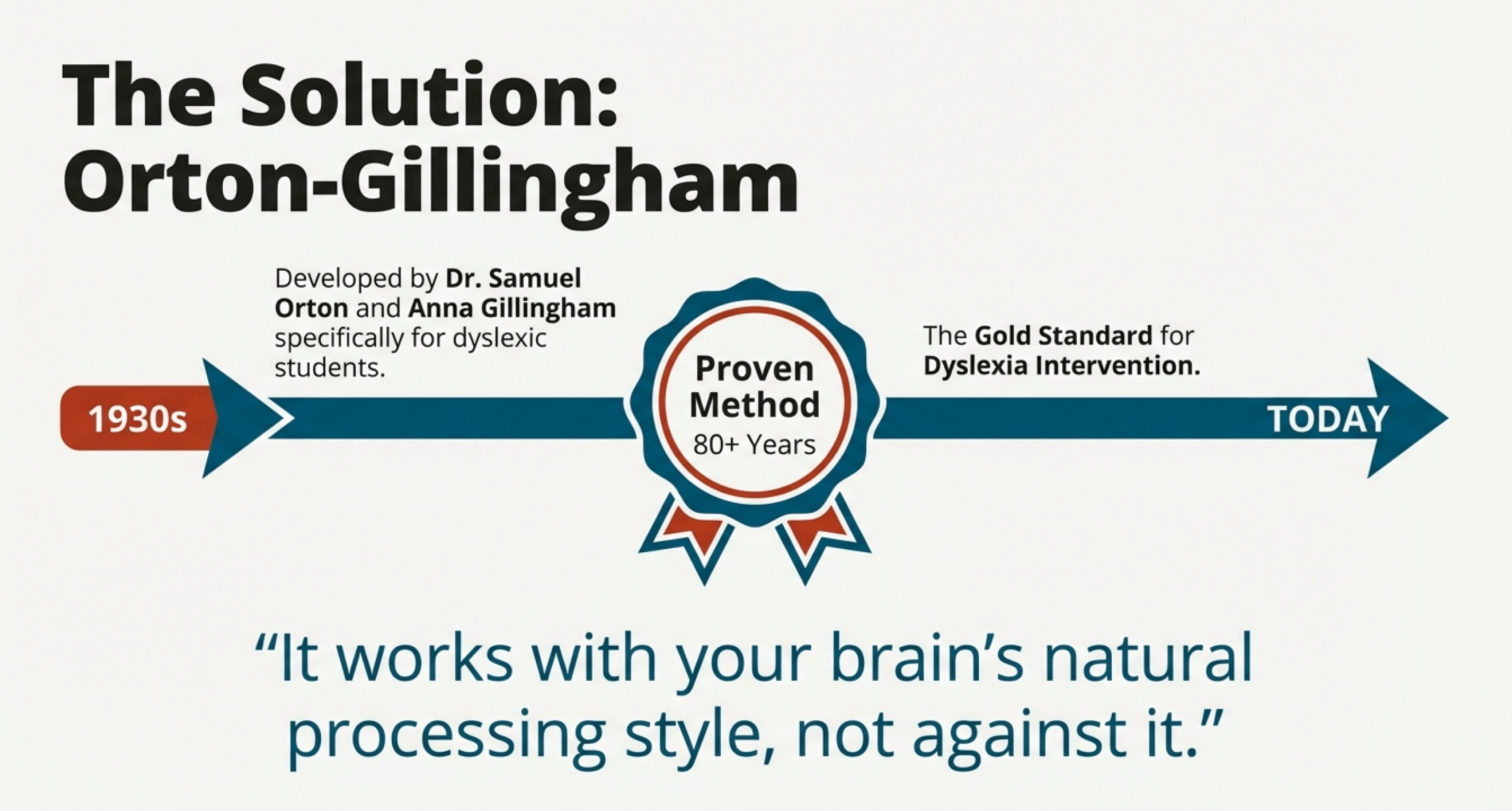 Dr. Samuel Orton and educator Anna Gillingham developed their approach in the 1930s specifically to help dyslexic students. Unlike general reading methods adapted for struggling readers, Orton-Gillingham was purpose-built for how dyslexic brains learn.