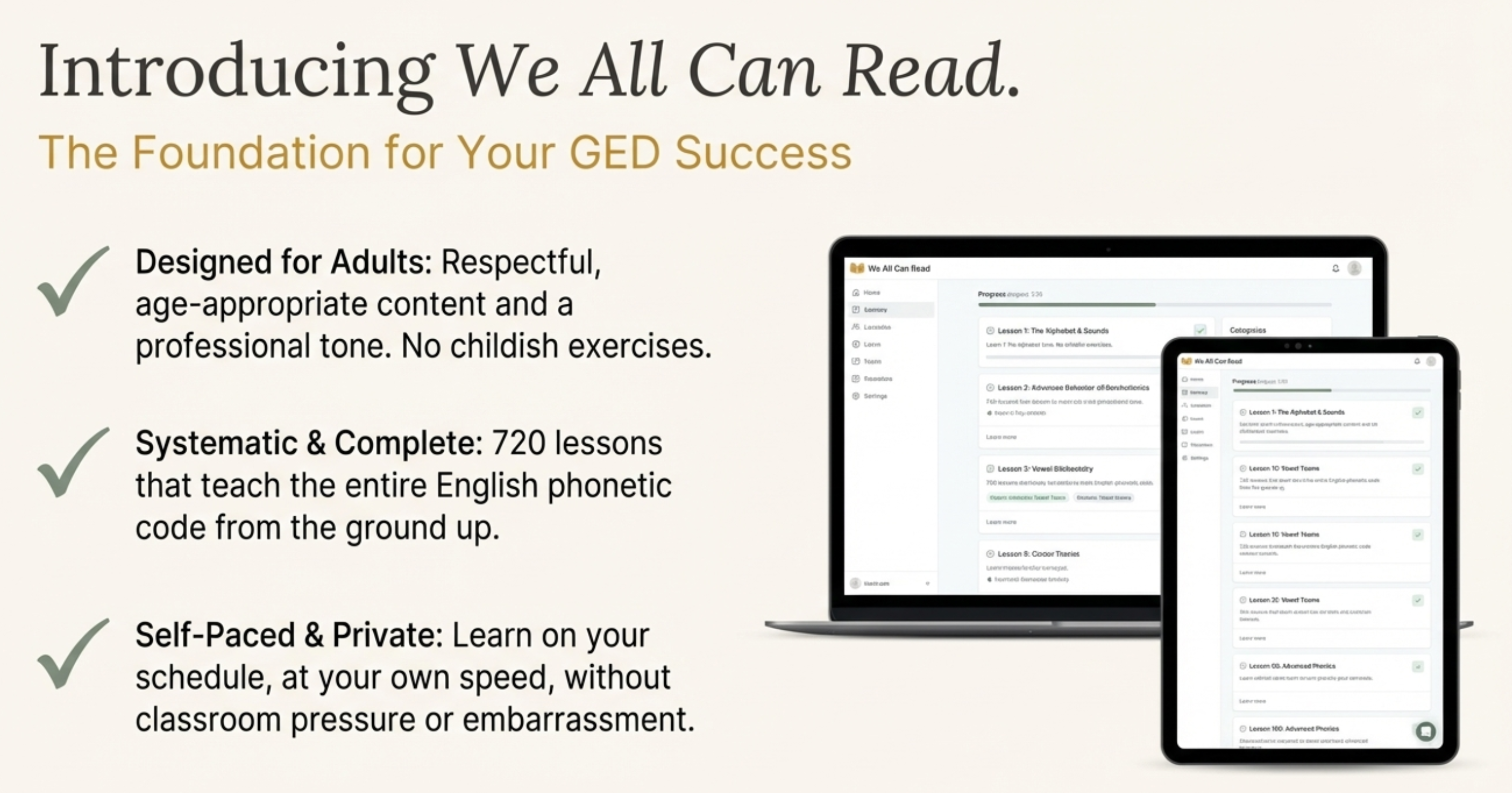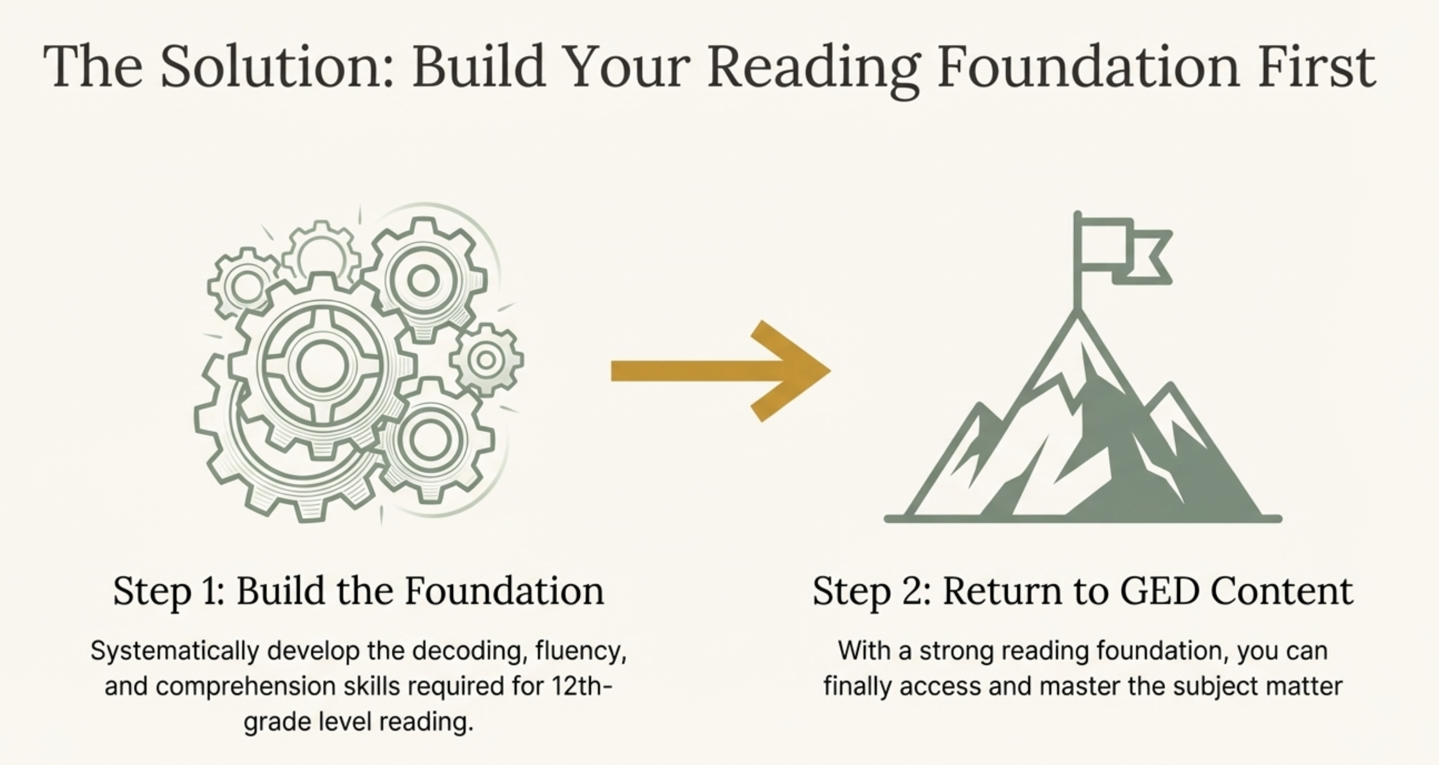 Now you understand what’s actually wrong, and you can fix it. Build your reading skills systematically, then tackle the GED with the foundation you need to succeed.