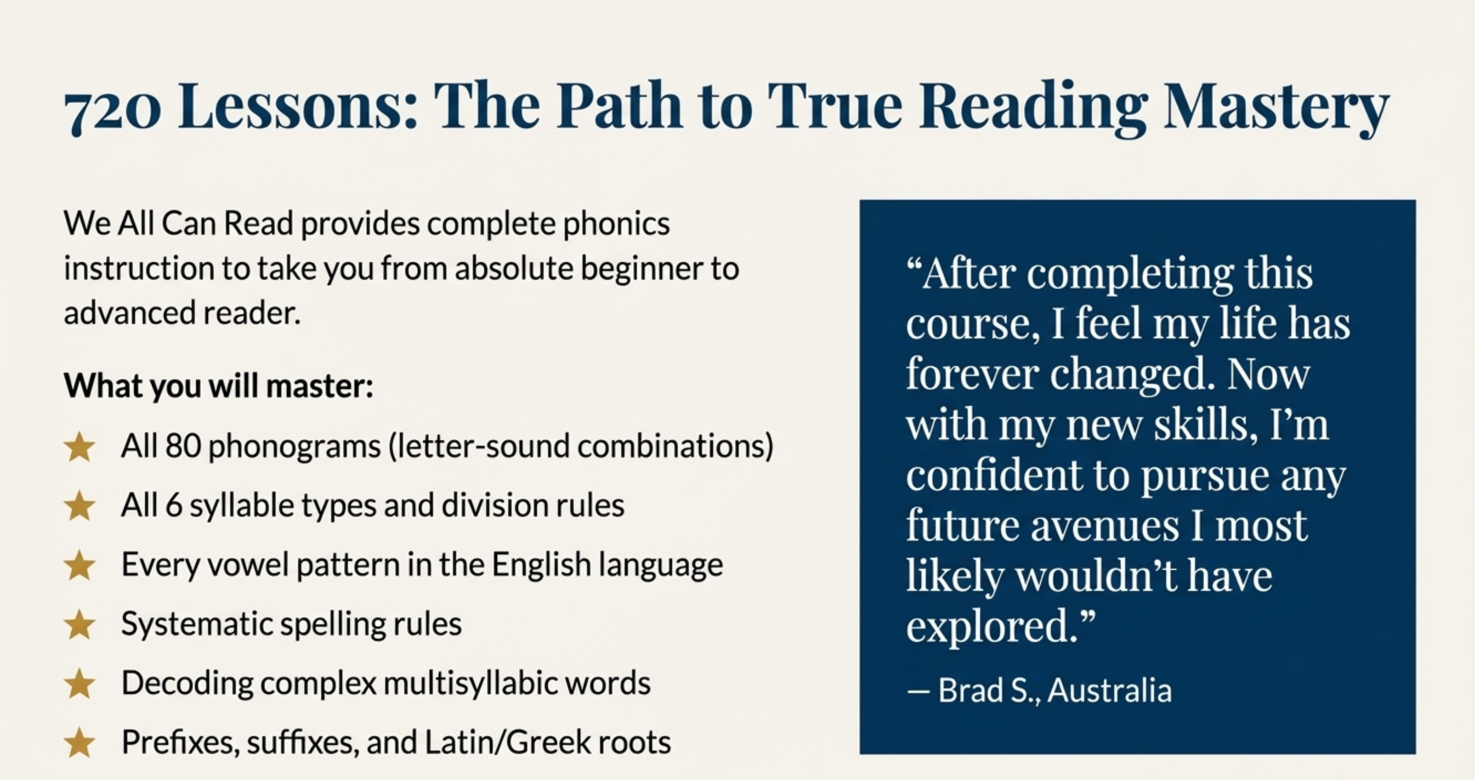 We All Can Read: Many complete in 12 months with thorough, comprehensive skills