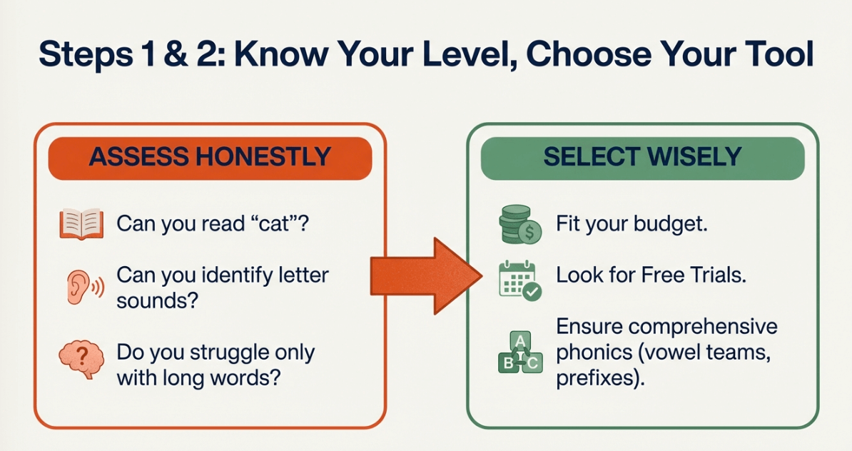 Incomplete phonics instruction. Some programs teach only basic phonics, leaving you unable to read complex words. You need comprehensive instruction covering all English phonetic patterns.