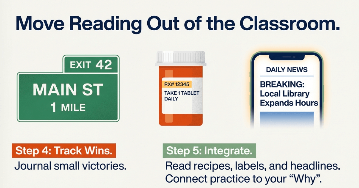 If you’re learning to read for employment, start reading job postings. If you’re doing it to help your children, practice with their school forms. Connecting practice to real-world goals reinforces motivation.