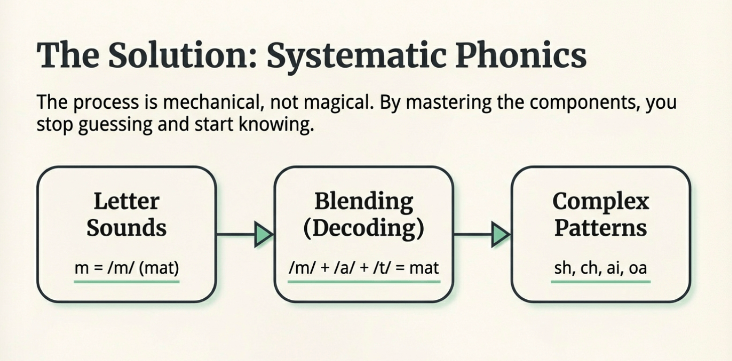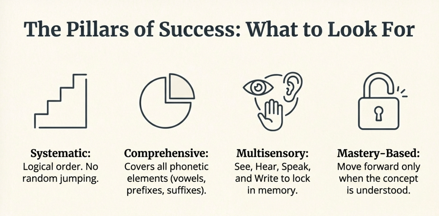 No structured sequence. Random phonics lessons or activities without clear progression won’t build the systematic understanding you need.