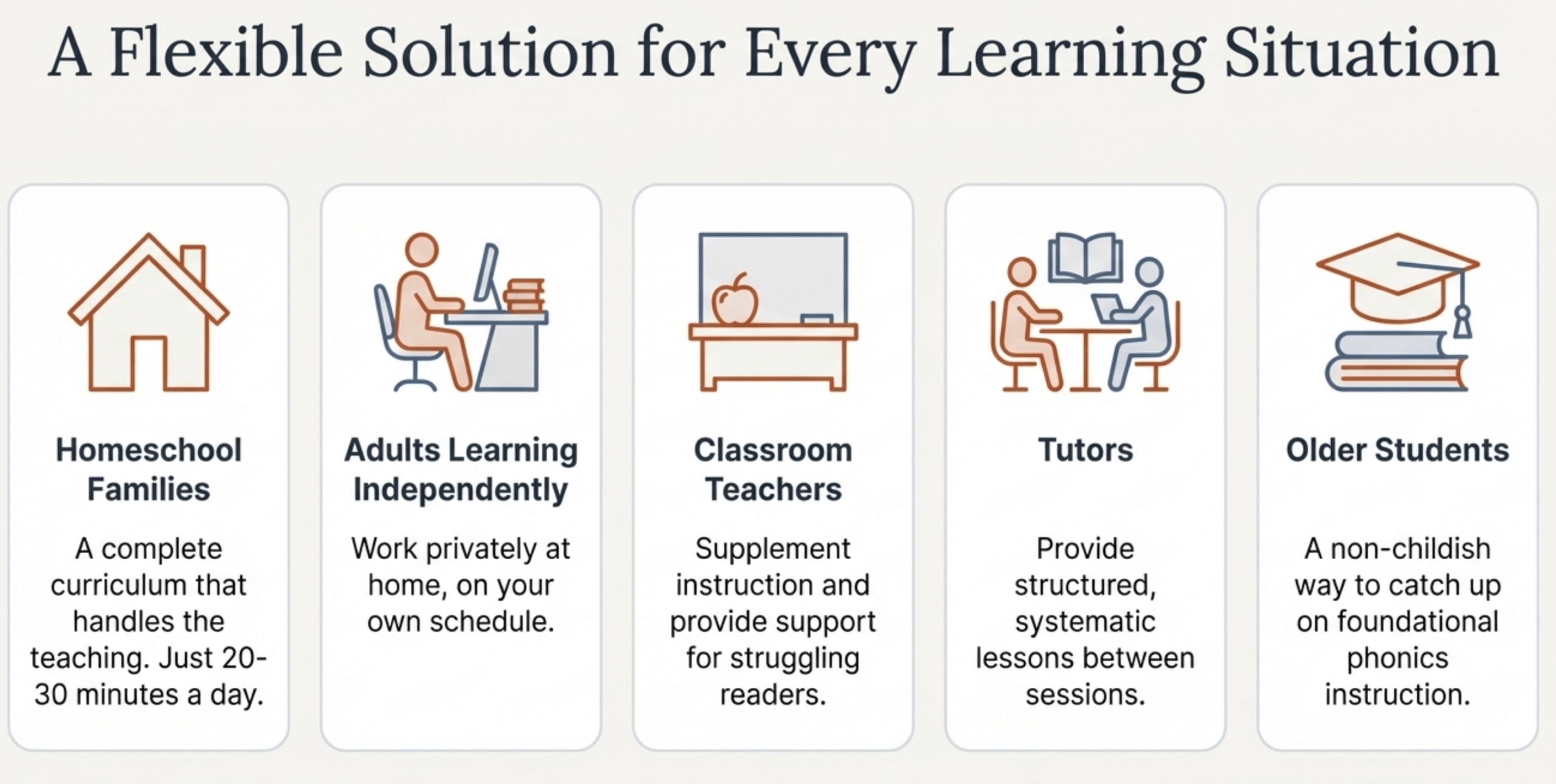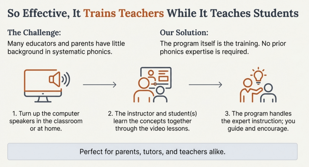 Even instructors who never learned phonics themselves can successfully teach using our program.