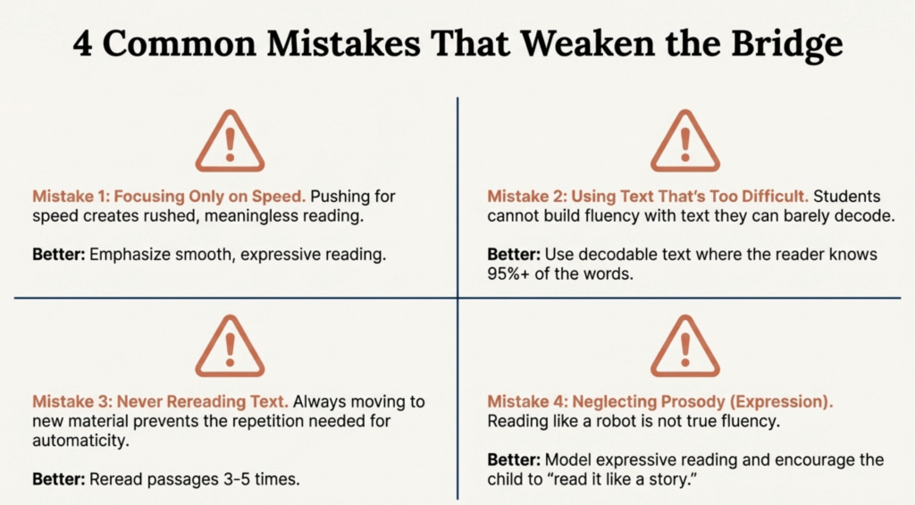 Some students, eager to read faster, begin rushing through text and making errors. This defeats the purpose—fluency without accuracy isn’t true fluency.