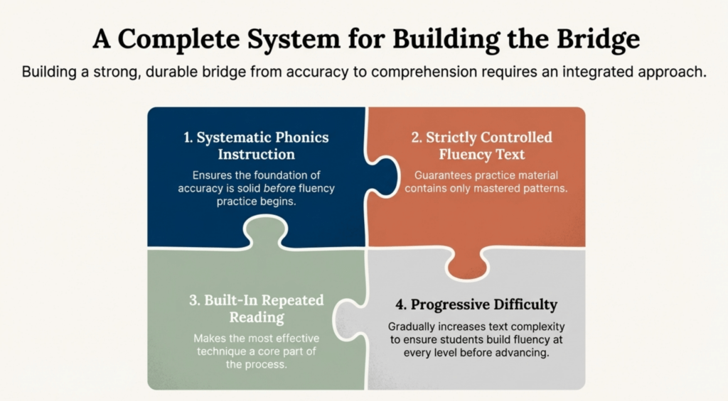 All three elements must develop together. A student who reads accurately but painfully slowly isn’t fluent. A student who reads quickly but with flat, robotic expression isn’t fluent. True fluency requires all three components working in harmony.
