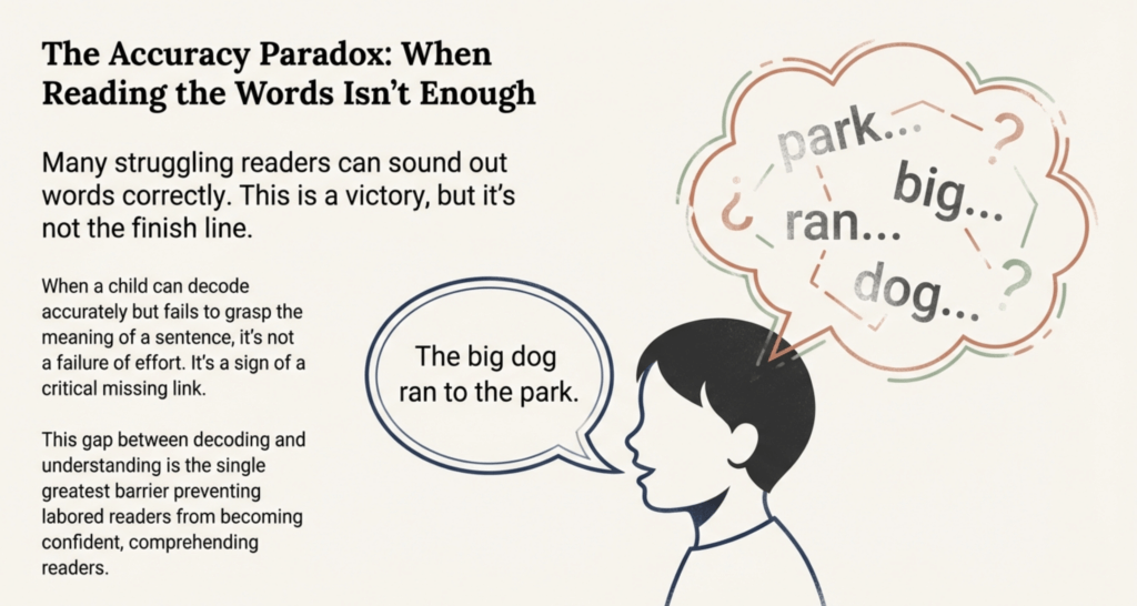 Many parents celebrate when their struggling reader finally starts decoding words correctly. After months or years of difficulty, seeing your child sound out words accurately feels like victory. And it is—but it’s not the finish line.