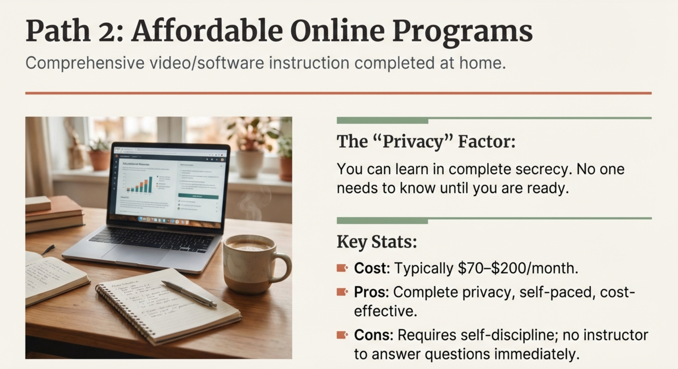 Best for: Adults who need schedule flexibility, want privacy, are self-motivated, and want systematic instruction at reasonable cost