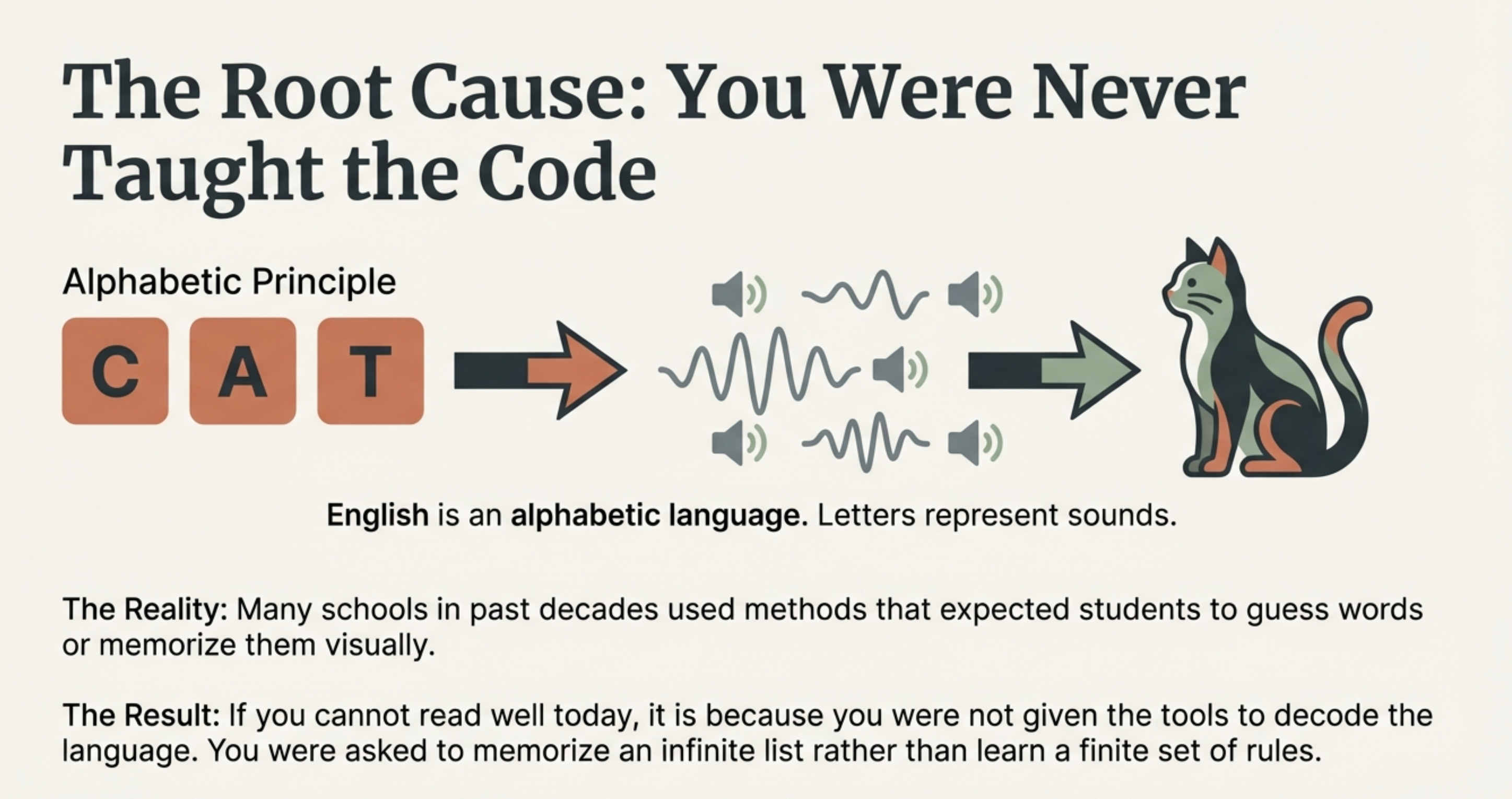 Understanding why you struggle with reading is liberating. The reason isn’t about you—it’s about how you were taught.