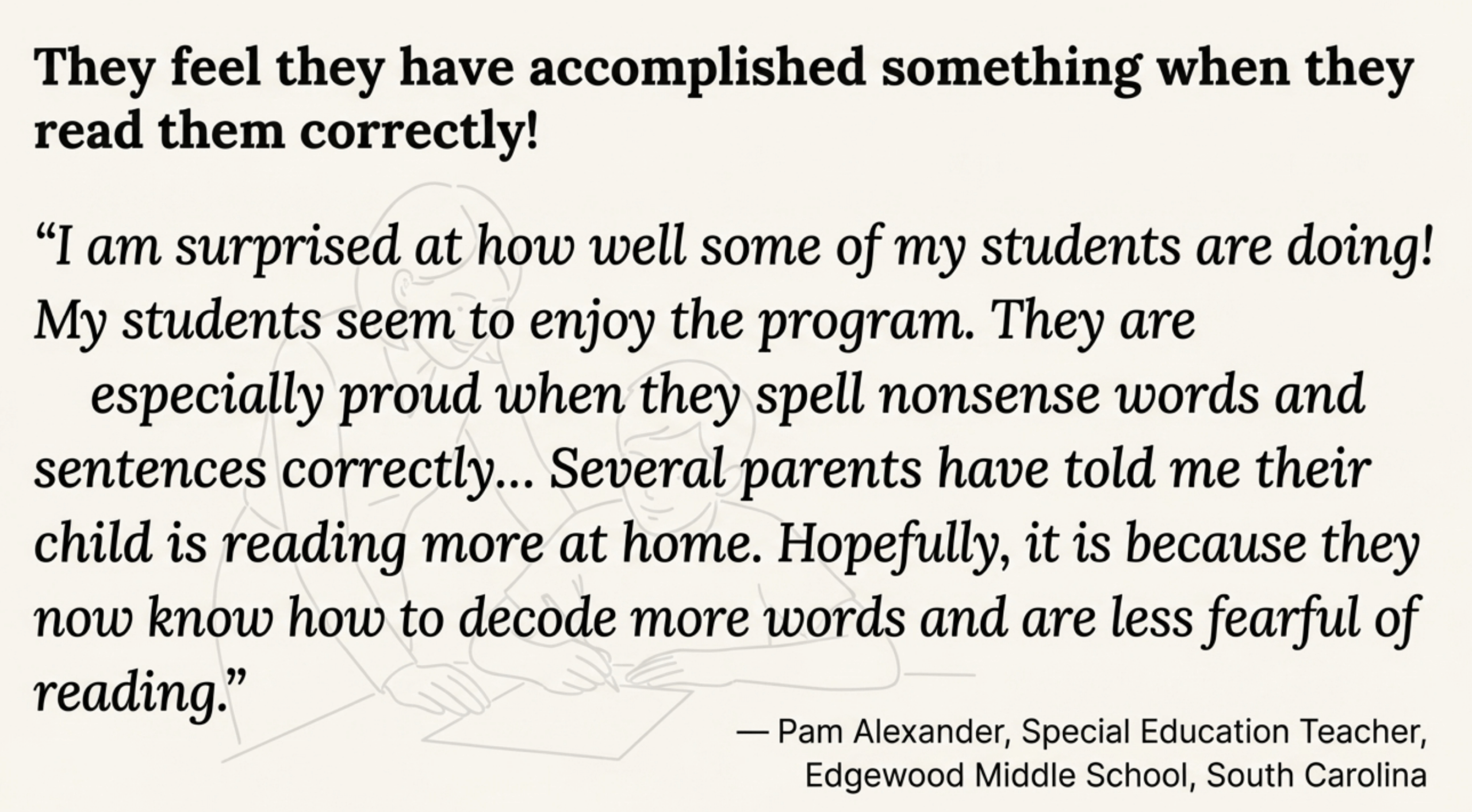 — Pam Alexander, Special Education Teacher, Edgewood Middle School, South Carolina
