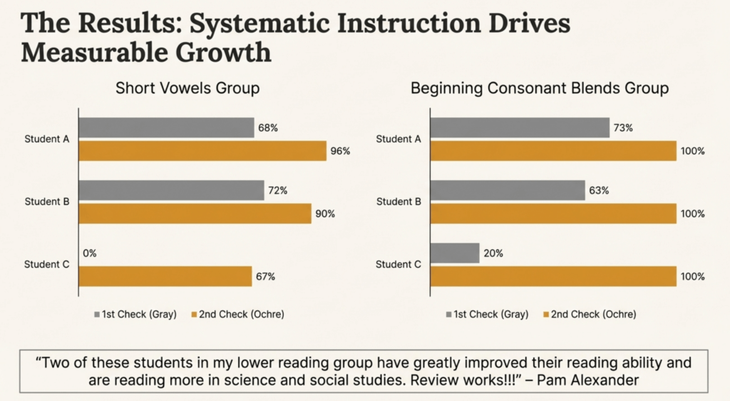 “Two of these students in my lower reading group have greatly improved their reading ability and are reading more in science and social studies. Review works!!!”