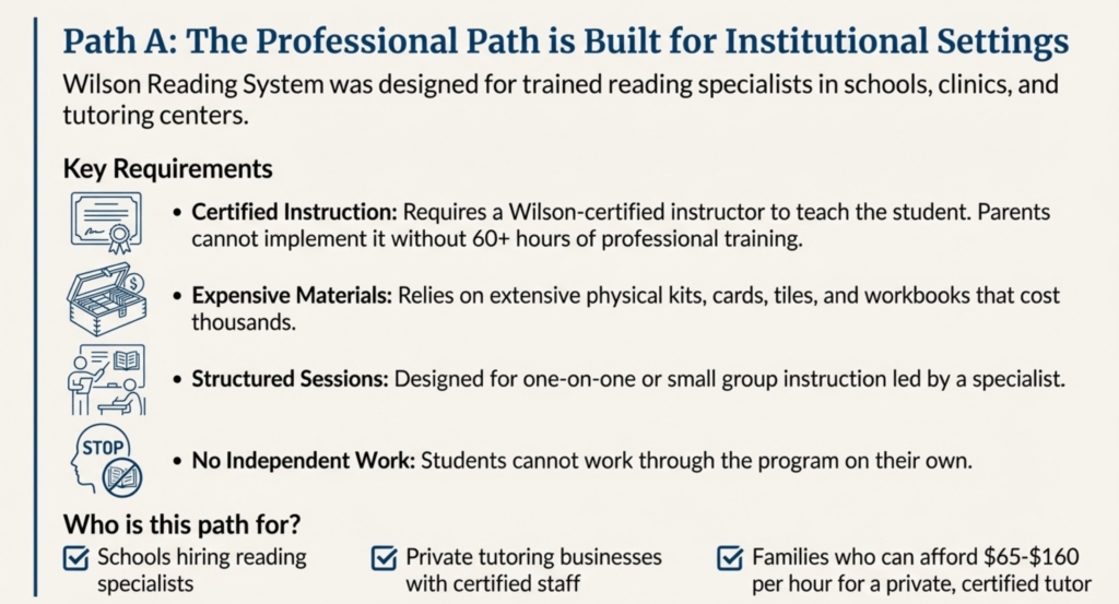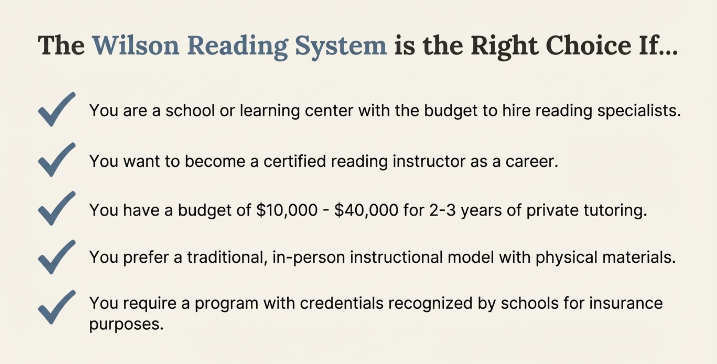 - ✅ Families who can afford $65-160/hour for a Wilson-certified tutor